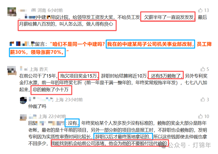 中J某局的设计院,给领导发大奖,而员工被欠薪半年了;估计是欠薪太久已经影响到员工的正常生活了,很多员工就去催院里发工资,院里的态度一直很敷衍,最后不胜其烦的领导给员工们月发八百块;就这样把人打发了?很多员工在网络哭泣、抱怨,吐槽没法活了,没良心;害,典型的领导吃饱,员工跌倒啊!类似的事情在中J也不是第一次上演了,之前有读者留言说自己在中J某局子公司上班,单位...